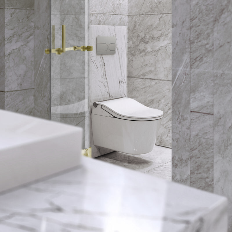 Ein Dusch-WC, auch als japanische Toilette, Duschtoilette oder Washlet (nach dem TOTO Washlet™) bekannt, ist die praktische und platzsparende Kombination aus Toilette und Bidet, je nach Modell mit zusätzlichen Funktionen vom Warmluftfön bis zur praktischen Beleuchtung. Die Gesäßdusche reinigt Ihren Intimbereich nach jedem Toilettengang gründlich mit warmem Wasser – für hygienische Reinheit und echte Wohlfühlgarantie.